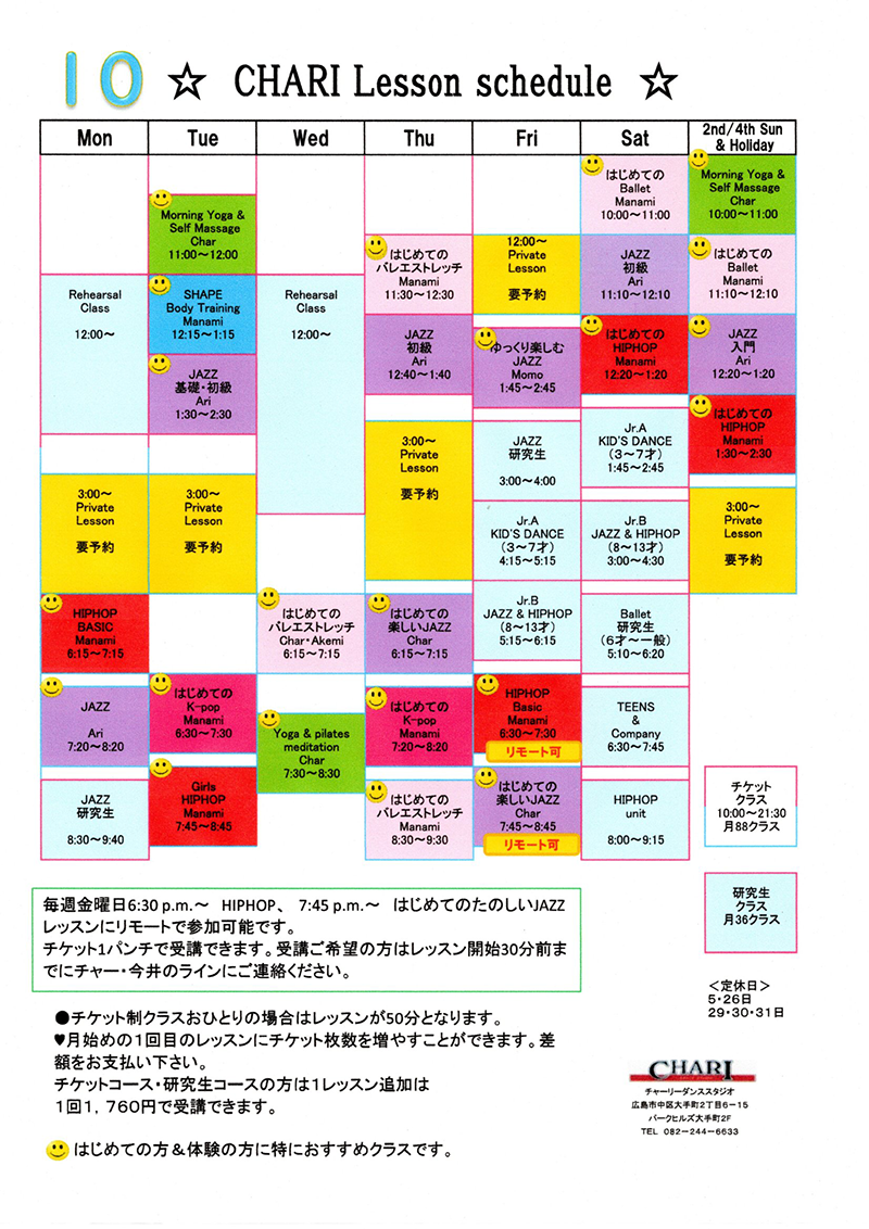 チャーリーではチケット制や月謝制によるさまざまなダンス&フィットネスクラスを開講しています。